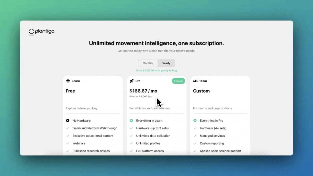 For the first time, you can create a free Plantiga Learn account with no hardware required. You get full access to our education hub, including demos, platform walkthroughs, instructional videos, and exclusive content from our Founding Athletes. We're actively adding new courses on load, applications, biomechanical concepts, and case studies in the coming weeks.