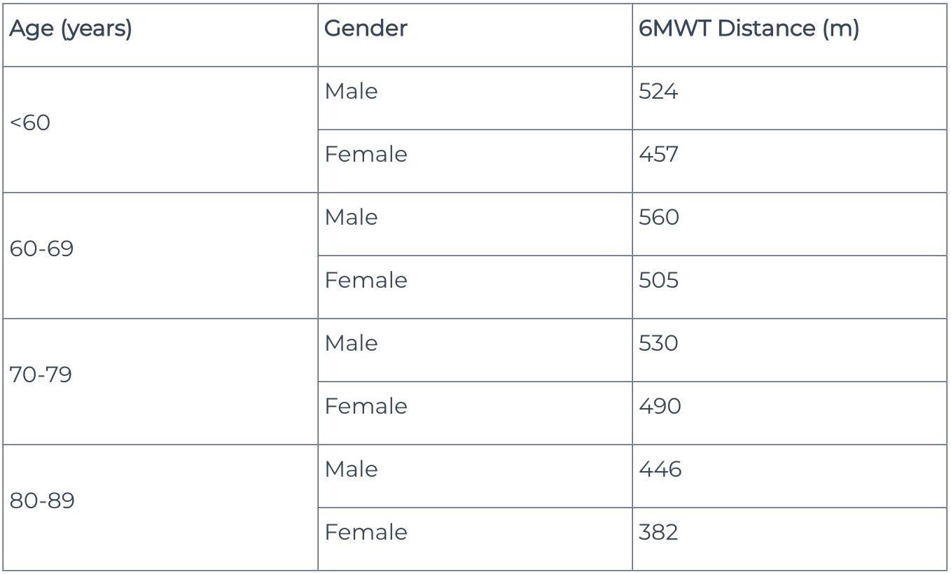 The walking distance covered over the duration of the activity. This can help streamline 2 minute walk tests (2MWT) and 6 minute walk tests (6MWT) by removing the need for manual distance measurement. 2MWT and 6MWT are commonly used measures of walking/aerobic capacity for the elderly and for people with neurological conditions.